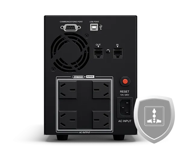 UPS提供数据线保护,保护连接设备免受雷电引起的浪涌和尖峰,避免潜在的系统损坏。