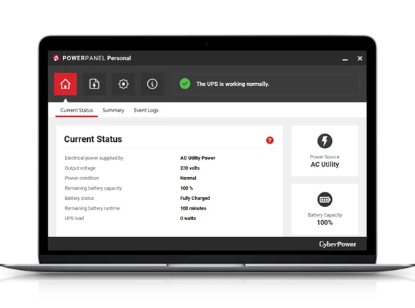 PowerPanel®个人版软件可进行妥善计算机关机,避免停电时资料遗失。此软件也支持其他功能,如监控不间断电源系统、浏览历史纪录和设定各种参数。推荐软件